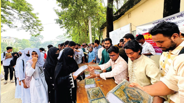 নর্থসাউথ শিক্ষার্থীর কোরআন অবমাননার প্রতিবাদে হরগঙ্গায় কোরআন বিতরণ