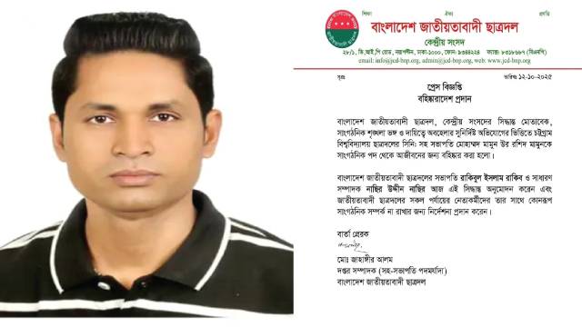 বাংলাদেশ জাতীয়তাবাদী ছাত্রদলের সভাপতি রাকিবুল ইসলাম রাকিব ও সাধারণ সম্পাদক নাহিদুল ইসলাম নাহিদের অনুমোদনে এ বহিষ্কার কার্যকর করা হয়। পাশাপাশি সংগঠনের কোনো পর্যায়ের নেতাকর্মীর সঙ্গে তার সাংগঠনিক যোগাযোগ না রাখার নির্দেশনাও প্রদান করা হয়েছে।