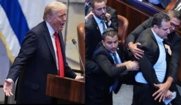ইসরায়েলের পার্লামেন্টে ভাষণ দেওয়ার সময় দেশটির কিছু সংসদ সদস্যের বাধার মুখে পড়েন মার্কিন প্রেসিডেন্ট ডোনাল্ড ট্রাম্প। শুরুতে তুমুল করতালির মধ্য দিয়ে ভাষণ শুরু করেন ট্রাম্প। কিন্তু ভাষণটি চলাকালে পার্লামেন্টের বিরোধীদলীয় কিছু সদস্য হট্টগোল বাঁধিয়ে ট্রাম্পকে থামিয়ে দেন। খবর বিবিসির