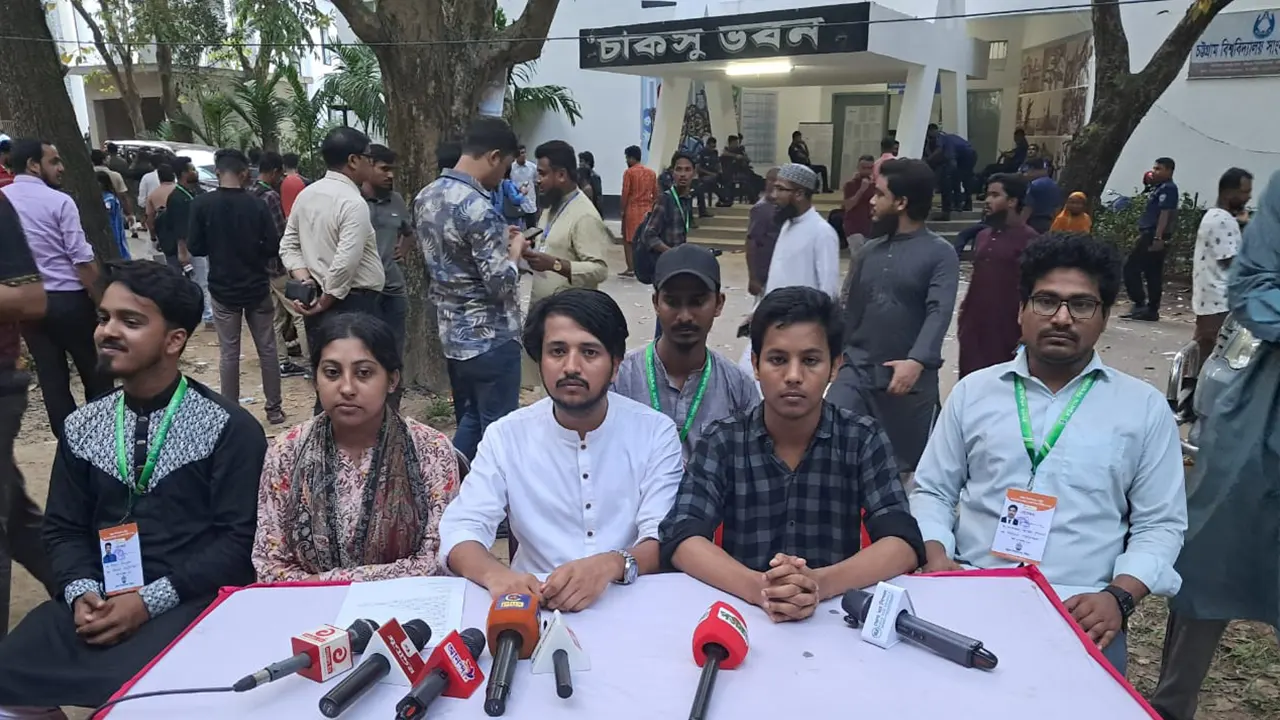 সইবিহীন ব্যালট পেপার, জাল ভোট প্রদানসহ ১০টি কারণ দেখিয়ে ভোট বর্জনের ঘোষণা দিয়েছে ‘বিশ্ব ইনসানিয়াত বিপ্লব স্টুডেন্ট ফ্রন্ট’ সমর্থিত ‘রেভ্যুলুশন ফর স্টেট অব হিউম্যানিটি’প্যানেল। বুধবার (১৫ অক্টোবর) বিকেল সোয়া ৫টার দিকে চাকসু ভবনের সামনে এক সংবাদ সম্মেলনে প্যানেলের ভিপি প্রার্থী কেফায়েত উল্ল্যাহ এ ঘোষণা দেন।