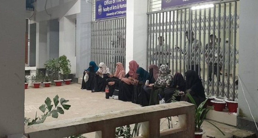বিশ্ববিদ্যালয়ের নতুন কলা ভবনের মূল ফটকের সামনে এমন দৃশ্য দেখা গেছে। এ ঘটনার বিষয়ে ছাত্রদলের নেতাদের সঙ্গে কথা বলা সম্ভব হয়নি।