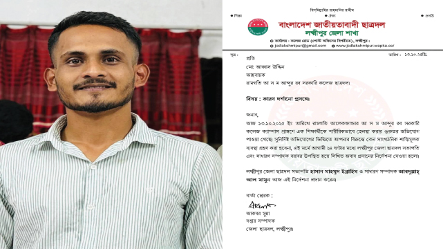 আকবর মুরাদ, দপ্তর সম্পাদক, জেলা ছাত্রদল, লক্ষ্মীপুরের স্বাক্ষরিত বার্তায় জানানো হয়, অভিযোগ প্রমাণিত হলে অভিযুক্ত নেতার বিরুদ্ধে কেন সাংগঠনিক শাস্তিমূলক ব্যবস্থা গ্রহণ করা হবে না, তা জানাতে বলা হয়েছে।