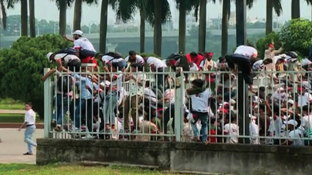 ফটক টপকে ভেতরে ঢুকে মঞ্চের সামনে সাজানো চেয়ারগুলোতে বসে পড়েন জুলাই যোদ্ধারা। এরপর মাইক হাতে নিয়ে তাদেরকে শান্ত হবার অনুরোধ করেন একজন প্রতিনিধি। খবর পেয়ে ইতোমধ্যে ঘটনাস্থলে পুলিশের একাধিক টিম উপস্থিত হয়েছে।